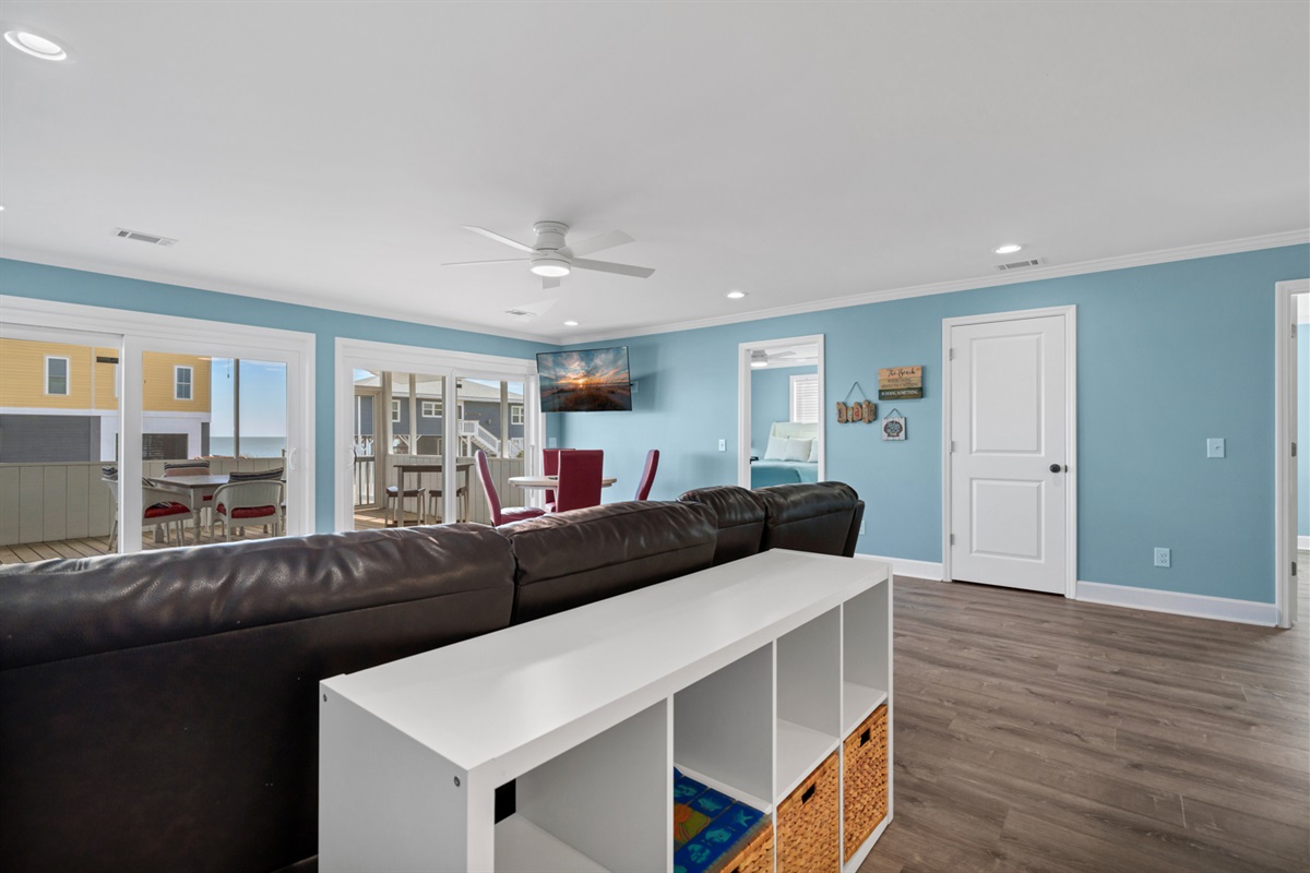 Guest Bedroom 2 is on the front right side of the house and sleeps 4 in one queen stand alone bed and and bunk bed which has a twin on top and bottom. This room features a tv, ( to be installed March 2026), and views of the ocean.