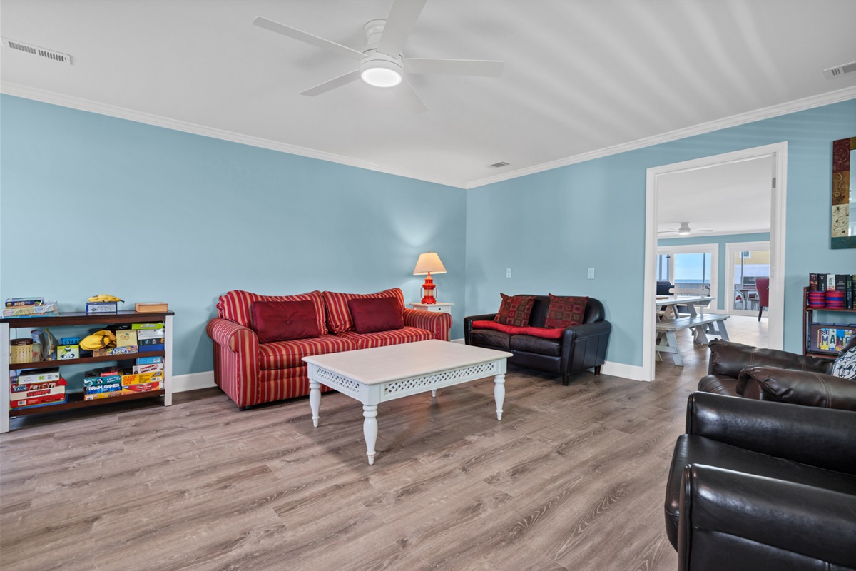 This home offers you 4 bedrooms (two with ocean views), 2 baths, a family room with gorgeous ocean views, a perfect room to watch the games with a large screen tv and fireplace.