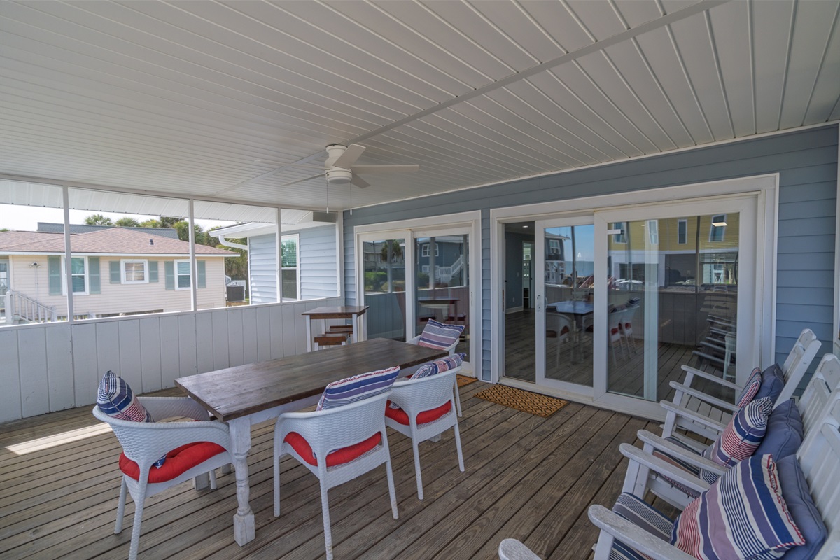 Relax for hours in a rocking chair and watch the ocean from our large screened in porch with rocking chairs & table and chairs for bistro dining.