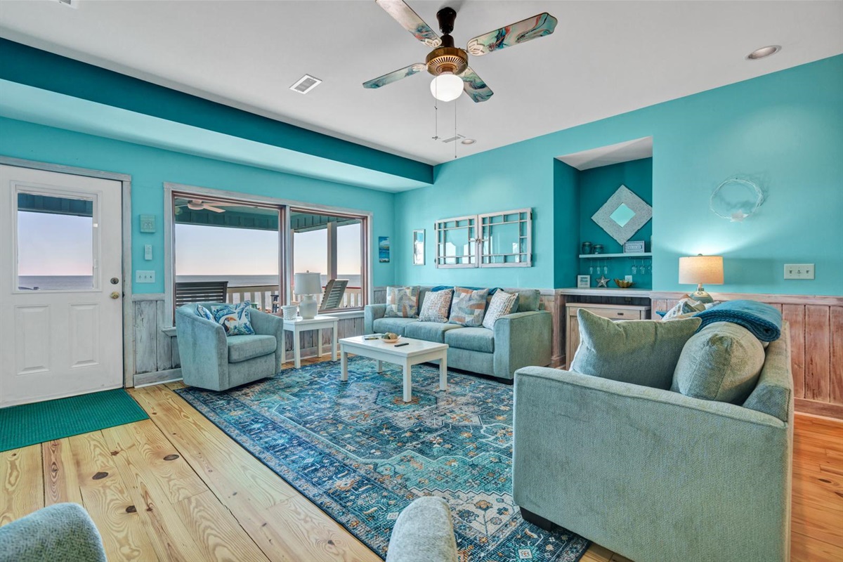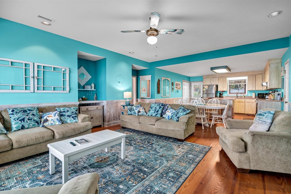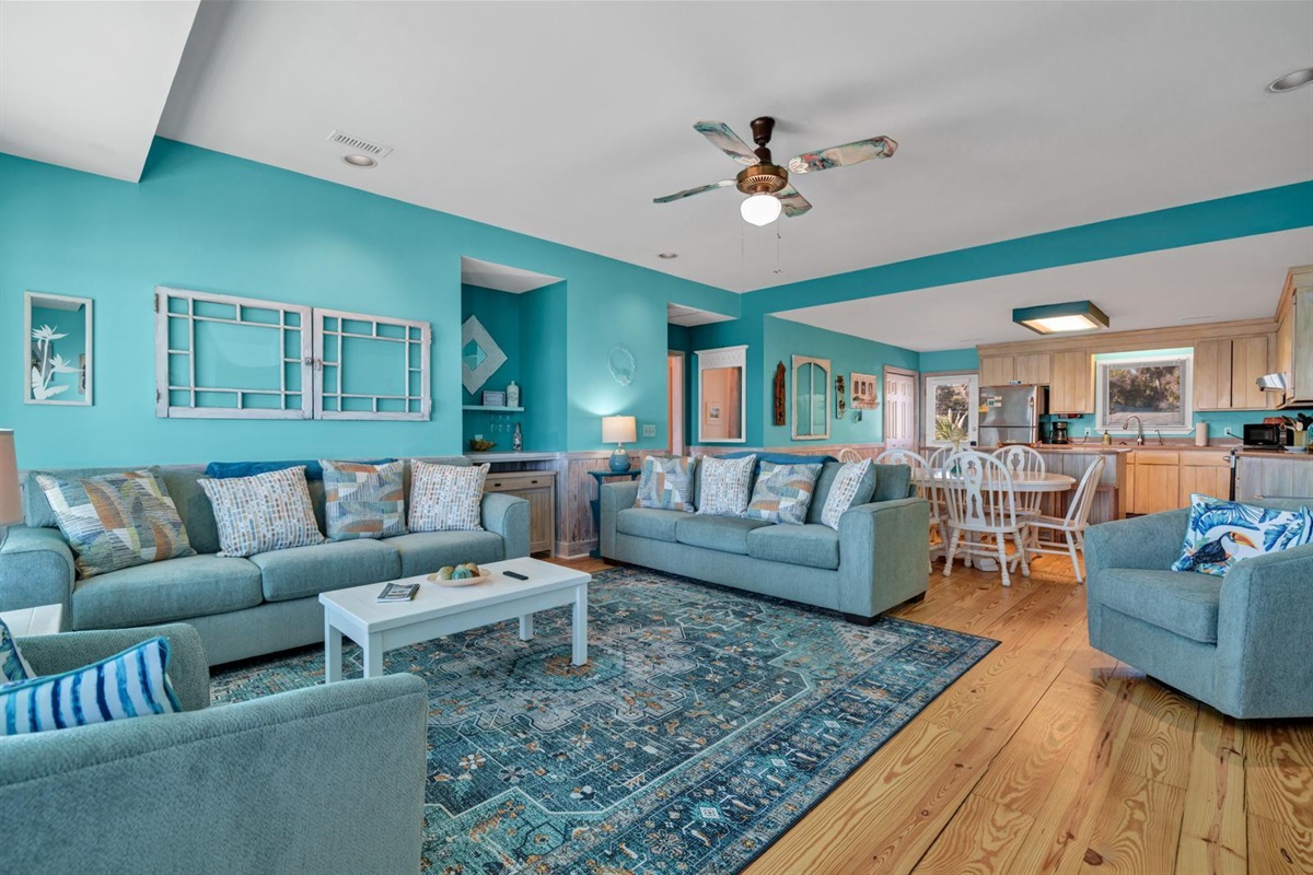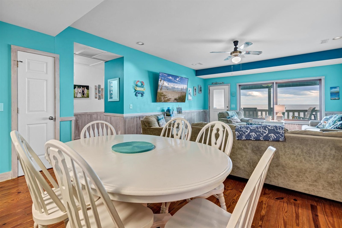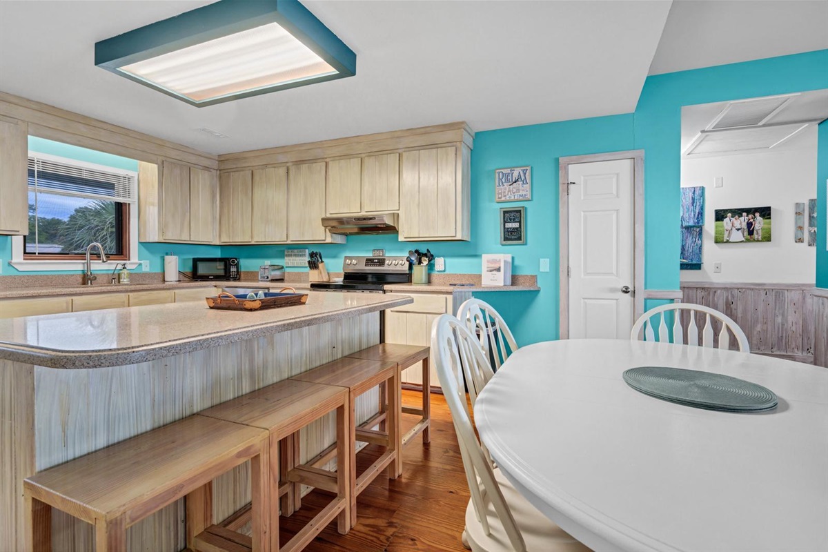 Sea La Vie's open family room/kitchen/dining area makes a perfect central location for chatting over a glass of wine while preparing a delicious meal for friends and family. The dining table and bar settings will ensure everyone has a “seat at the table” for every special celebration.