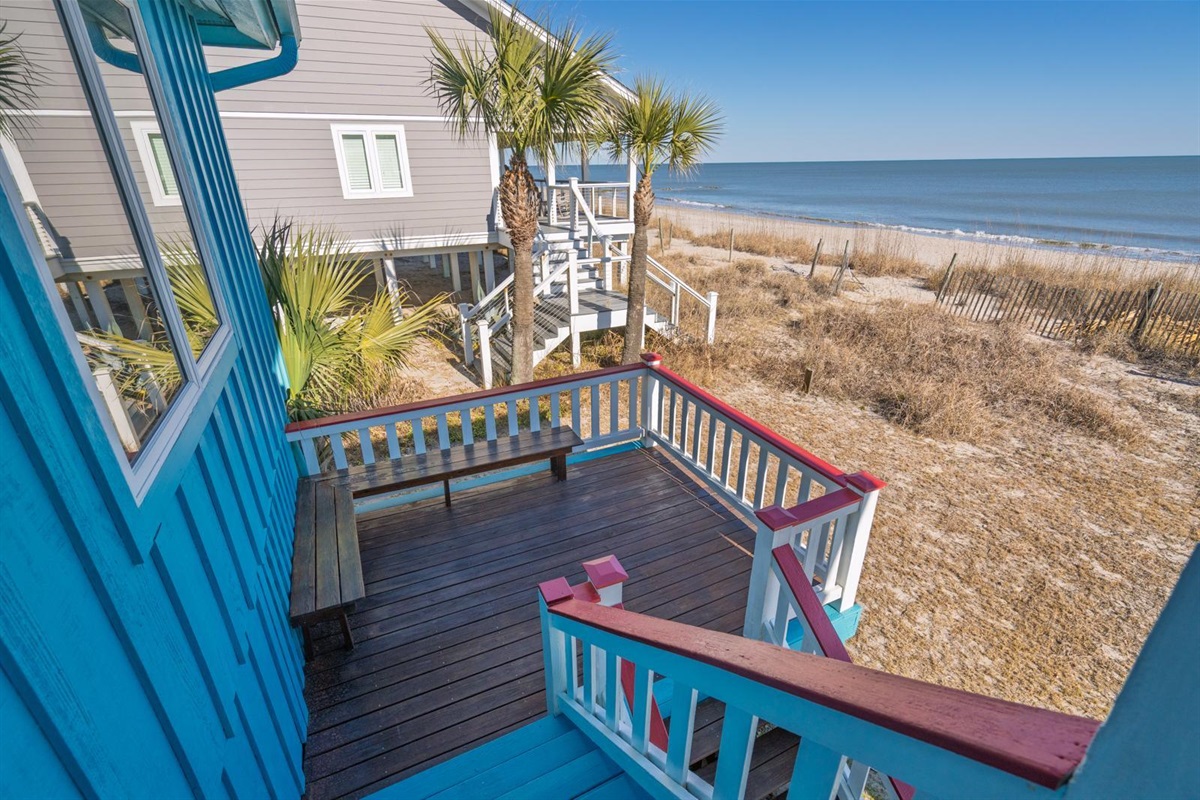 4 Bedrooms • 4 Bathrooms 4 Baths • Sleeps 1-10Our Sea La Vie is a lovely beachfront home with direct beach access,4 bedrooms, each with its own private full bath – a rarity in Edisto oceanfront homes. There are two master bedrooms, each have a queen bed and a picture window with unobstructed, gorgeous Atlantic Ocean views. Awaken in the morning and enjoy a magnificent sunrises from the comfort of your bed together; magical.