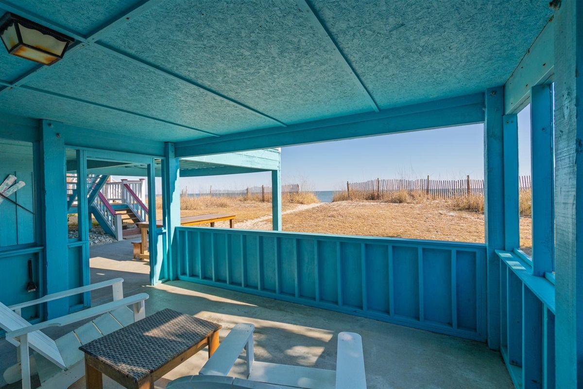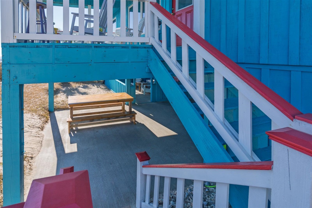 After enjoying a day of building sandcastles and sunbathing, shower off in your refreshing outside, private, enclosed hot/cold shower, then get ready to enjoy an oyster roast or shrimp boil on the covered, private party-patio complete with an oyster table. Or grill out the local fresh catch of the day on the charcoal grill.