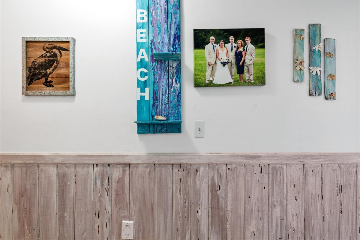 Even if it should rain, you will enjoy the coziness of the romantic fireplace in the main living area. (Don't worry, no firewood needed; you just push a button and your beautiful electric fireplace will beckon you to warming relaxation.) Curl up on one of the comfortable couches and watch a favorite movie or your favorite TV show. The kids can enjoy their own TV programming in their own bedrooms – no fighting over the remote here! Experience some fun family competition with a selection of board games.