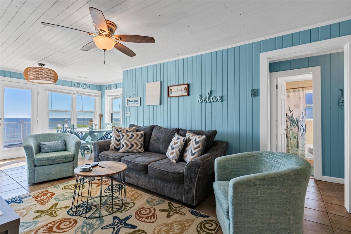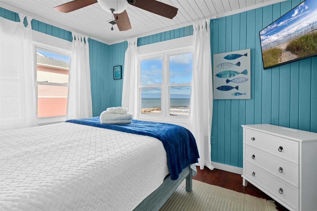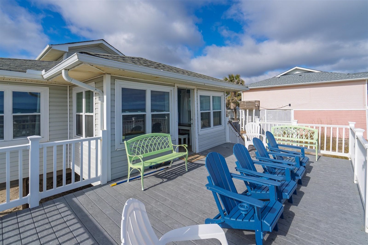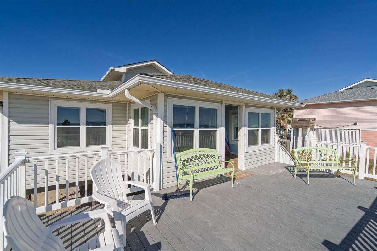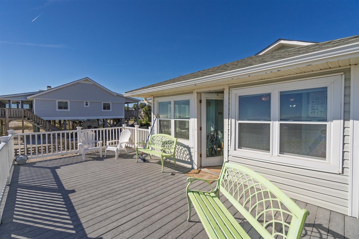 4 Bedrooms • 2 Bathrooms 2 Baths • Sleeps 1-8Welcome to Sea Oats! Come and enjoy a laid back vacation at Edisto's Sea Oats Vacation Cottage. Direct Ocean front; just walkout your back door down the stairs and out onto the beach! This is a traditional H-Plan Beach Home from days gone by....but updated! All new windows, beds, bedding, appliances etc. in 2025. Two oceanfront bedrooms with queen beds and tvs. Two Palmetto Blvd. side bedrooms, one with a queen and one with 2 twins both with tvs as well. Well appointed kitchen into an open floor plan allowing all the family and friends to spend time together while cooking, watching the game on the flat large screen tv and dining. Step out onto the ocean front sun deck and take in the vast views of the Atlantic and beach. Take a stroll for miles on the beach, hunt for shells and elusive shark's teeth, take a dip in the ocean, float away your cares, watch the kids play, cook out on the grill...... the choices are all yours! Take a quick warm shower before heading back up inside in the outdoor enclosed shower.