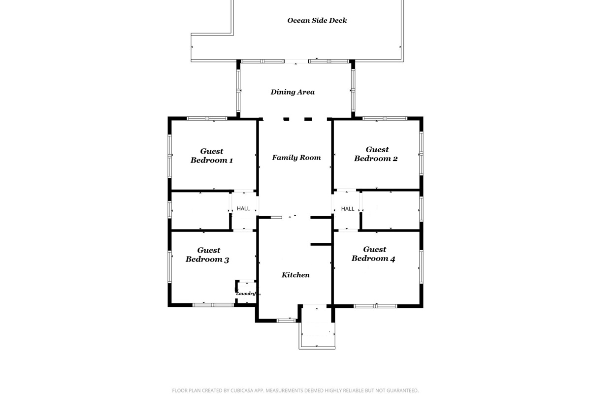 Two full baths on either side of the house between the guest bedrooms. Stack washer and dryer is upstairs in guest bedroom 3.