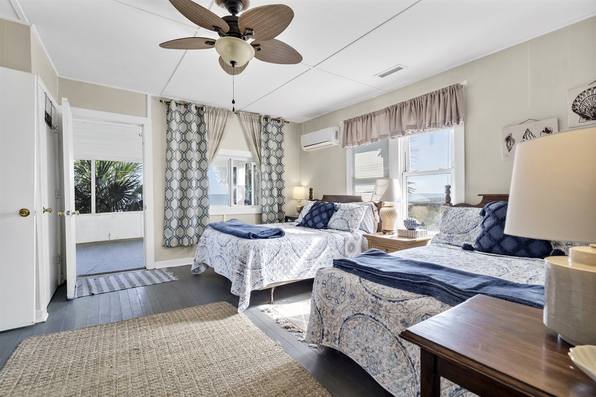 Oceanfront with direct beach access, the Oceanfront Ravissant is a 2256 square feet beach house built 84 years ago! The Ravissant brings back the memories of going to the beach when you were young. In those days, having air conditioning was a rare occurrence so the windows and doors were opened wide. Lots of the doors were even louvered to allow the ocean air to flow through the house even when closed. You could feel the ocean breeze blowing through the house all day and night. Sometimes it was so hot you would pull the mattresses out on the porch overlooking the ocean and sleep. It was just like sleeping right on the beach but much softer. Hearing the ocean waves hitting the beach at night was so relaxing. The Ravissant still has that rustic charm you’d experience way back when, but with modern updates like washer & dryer, heat and air & WiFi.